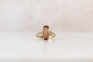 Crafted in radiant 18ct yellow gold, this exquisite ring features a stunning emerald-cut pink tourmaline at its heart. Accented by a cluster of shimmering laboratory-grown diamonds, it captures the enchanting hues of the northern lights. Perfect for those who appreciate refined elegance with a modern touch, this piece adds a captivating splash of colour and brilliance to any luxury collection.