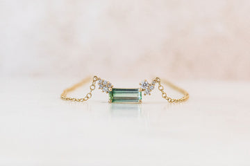 Experience the enchanting beauty of the Northern Lights with this 9ct yellow gold necklace, featuring a rare 1.49ct bi-colour tourmaline that shifts from blue to green. The horizontally set gemstone is enhanced by a delicate laboratory grown diamond cluster, adding a subtle sparkle that captures light like the Aurora Borealis. This exquisite piece combines sophisticated design with natural wonder, perfect for those who appreciate luxury and unique elegance.