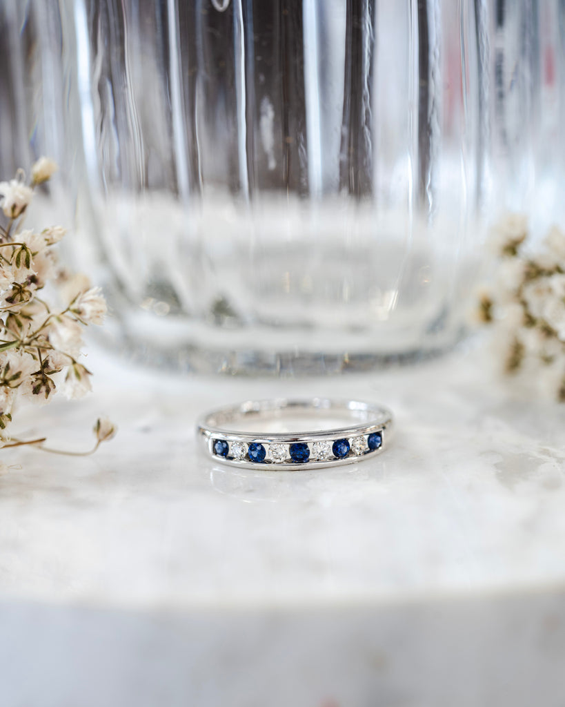 9ct White Gold Sapphire and Diamond Channel Set Eternity Ring