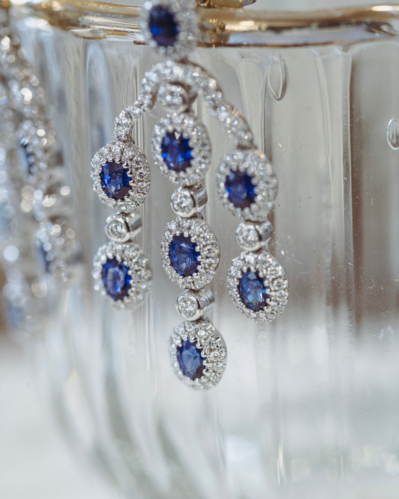 18ct White Gold Sapphire and Diamond Drop Earrings