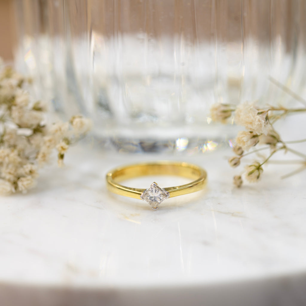 Indulge in timeless luxury with this 18ct yellow gold diamond solitaire. Intricately set with a 0.21ct princess cut diamond, this elegant piece is sure to become an exquisite heirloom that will stand the test of time.