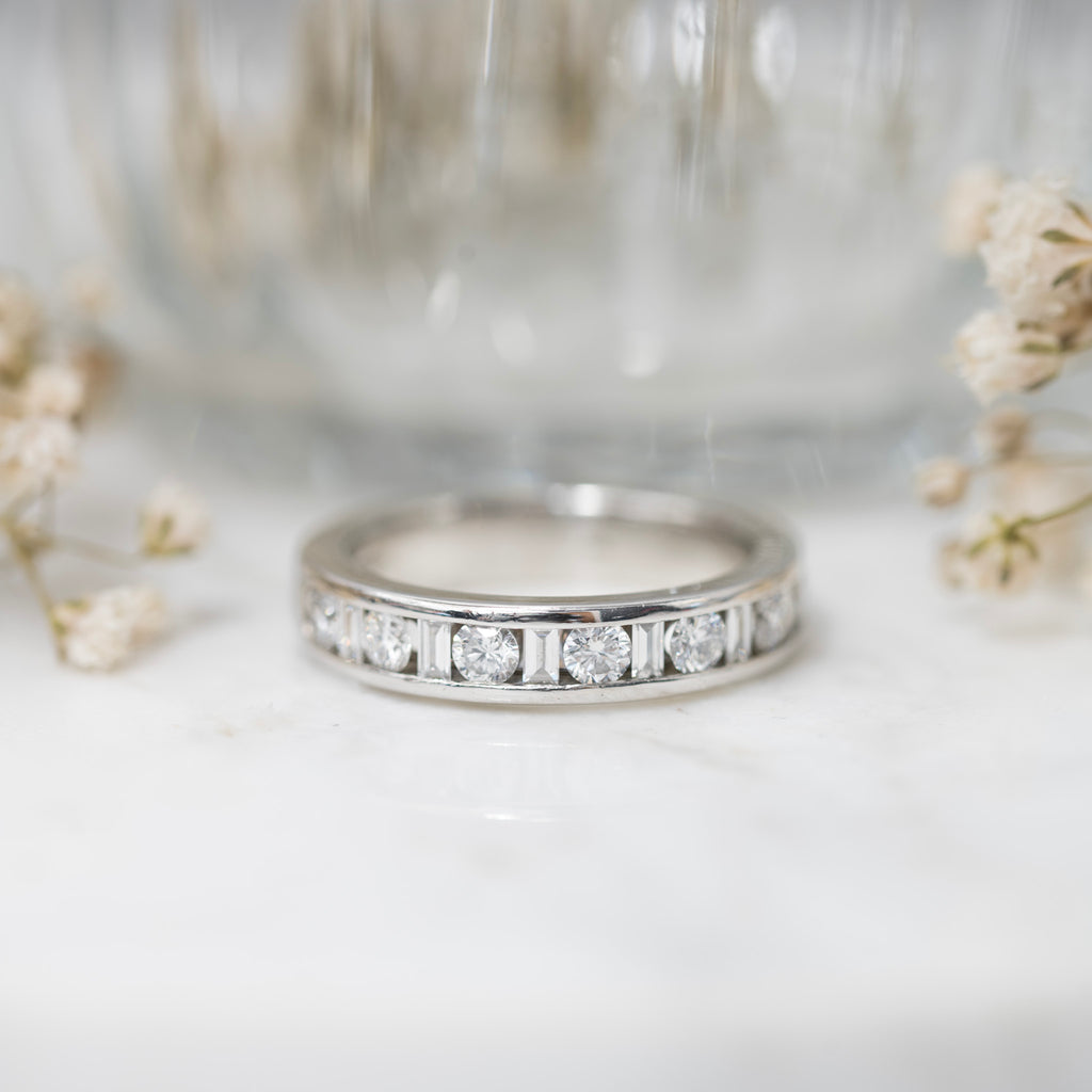 Platinum 1.00ct Round and Baguette Eternity Ring