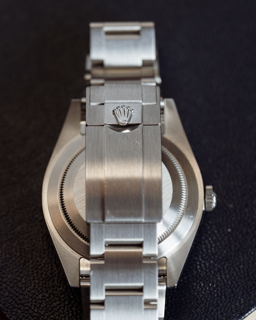 The Rolex Explorer is also fitted with an Oyster bracelet, complete with an Oysterlock clasp that prevents accidental opening and the Easylink comfort extension link, allowing for simple adjustments.