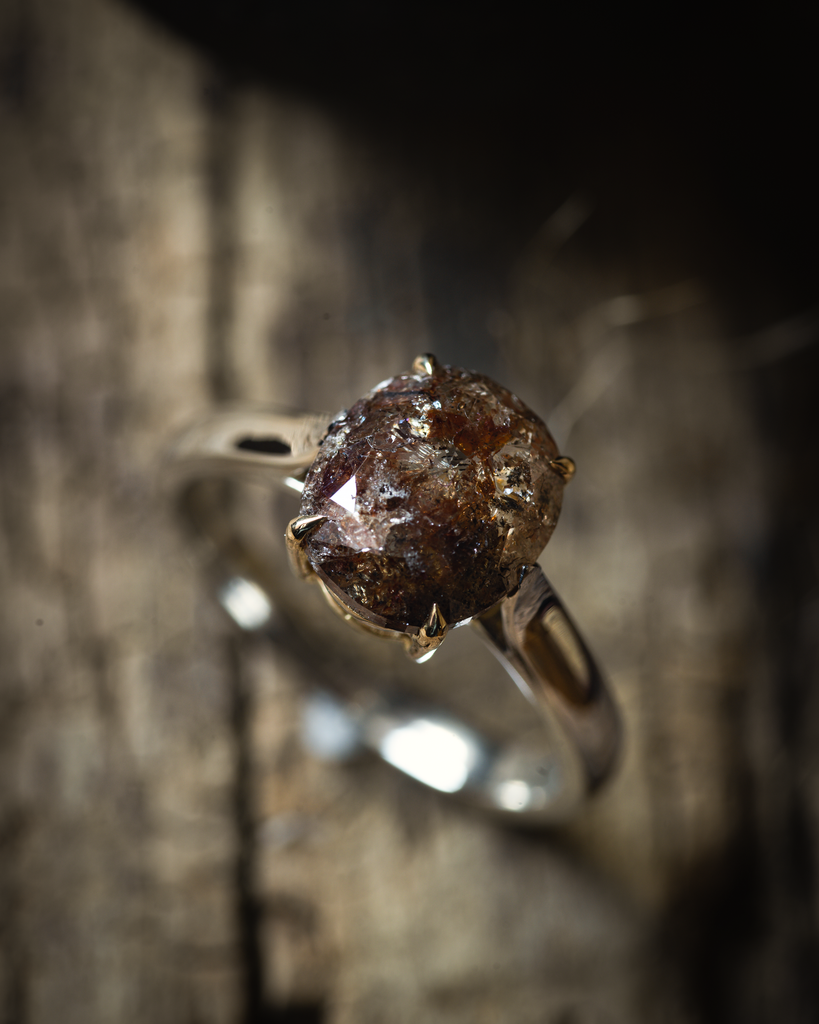 Platinum and 18ct Yellow Gold 2.20ct Oval Salt & Pepper Diamond Ring